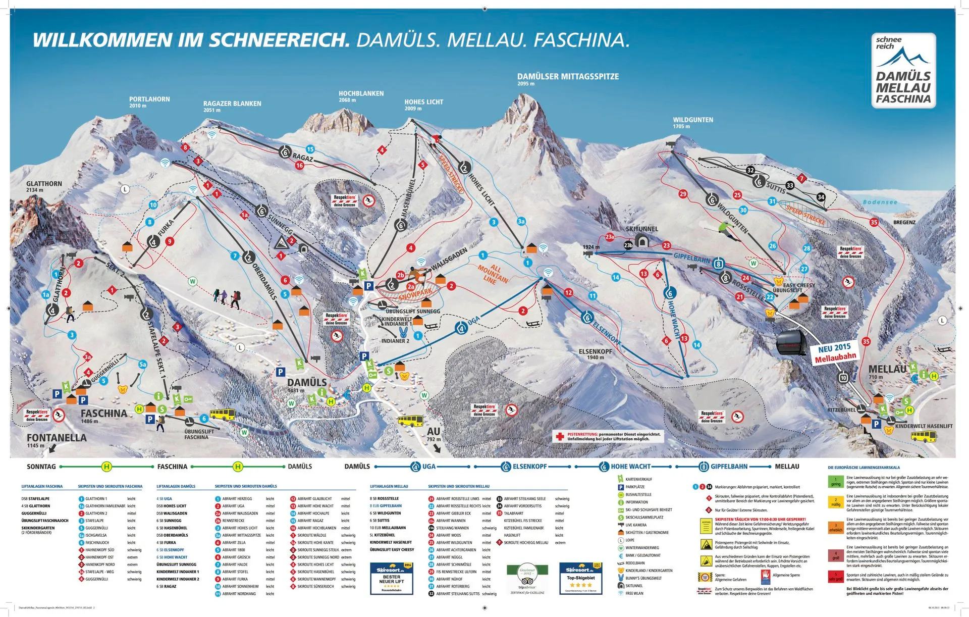 Pistenplan Damüls–Mellau – Faschina (Schneereich)